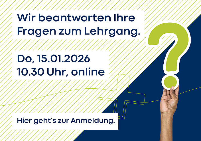 Die Lehrveranstaltungen finden über einen Zeitraum von 12 Monaten statt. Insgesamt sollten Sie ca. 9 Arbeitstage (5 Präsenztage + 8 Online-Vormittage ) für die Teilnahme einplanen.